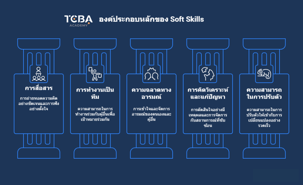 - Soft Skills: เน้น “วิธีการทำงาน” และการปฏิสัมพันธ์ (How you work)